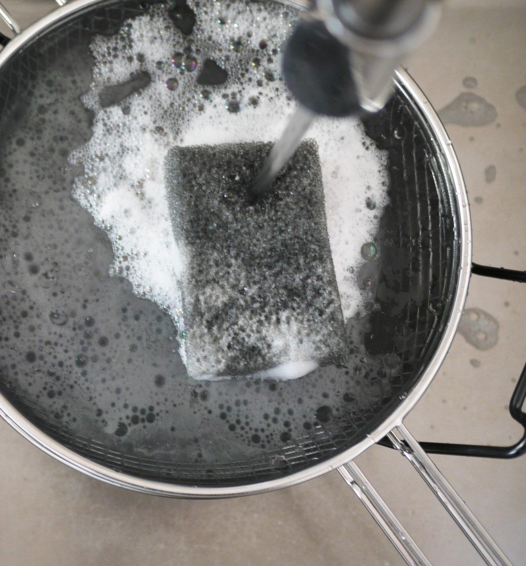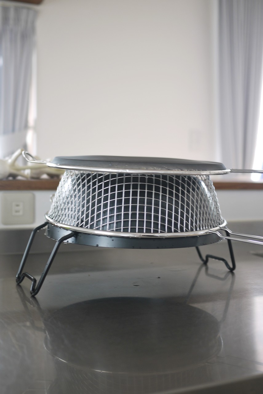 ま、網目はあらめだし、タワシで擦ればすぐ落ちます。網はしっかりしてるので、ゴシゴシ洗ってもたわんだりしません。