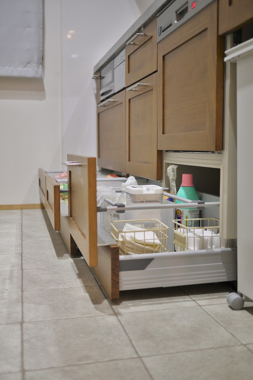 収納場所は、キッチン足元ゾーンの引き出しを整理して、