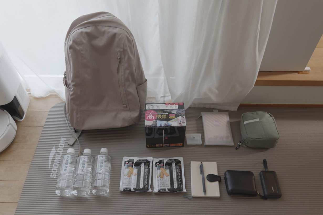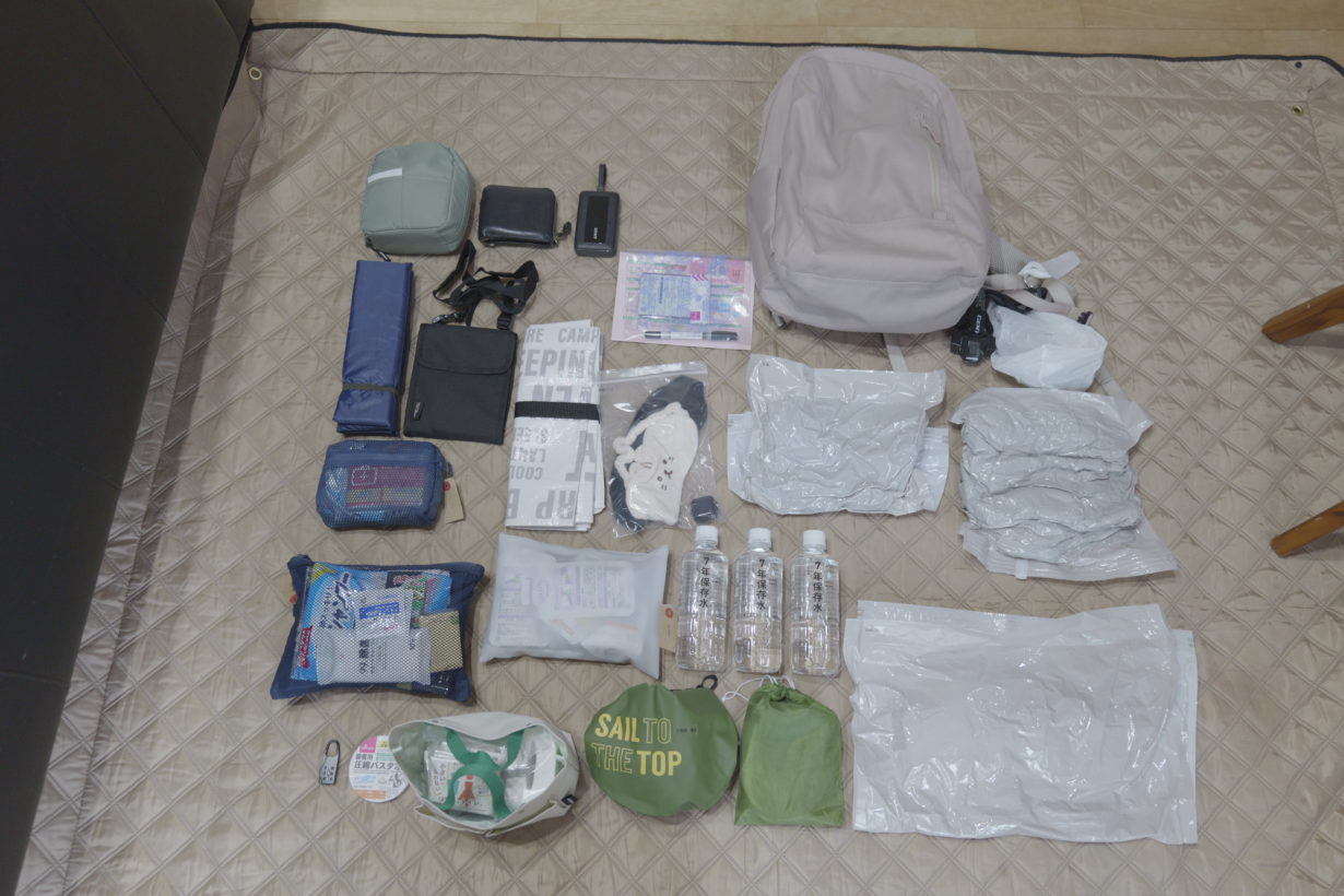 まず避難指示が出たときに何も準備していないテイで、イチから防災リュックを作りました