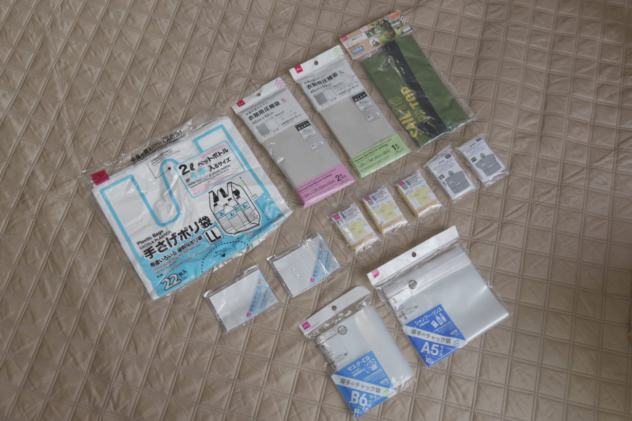 | 子ども・赤ちゃん | おむつ、おしりふき・離乳食 | おむつは濡れないように圧縮袋などに入れる |
