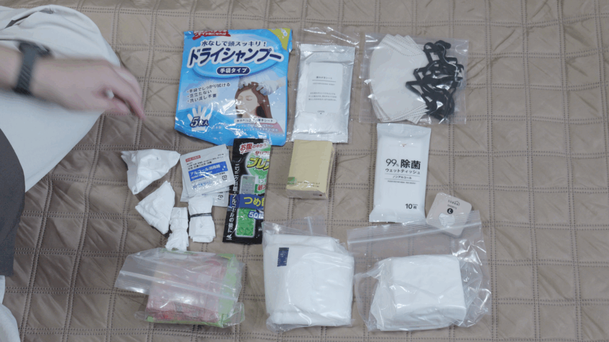 | 衛生用品 | ウェットティッシュ | 1つ | ボディタオル(ウェットタオル)があれば追加 |