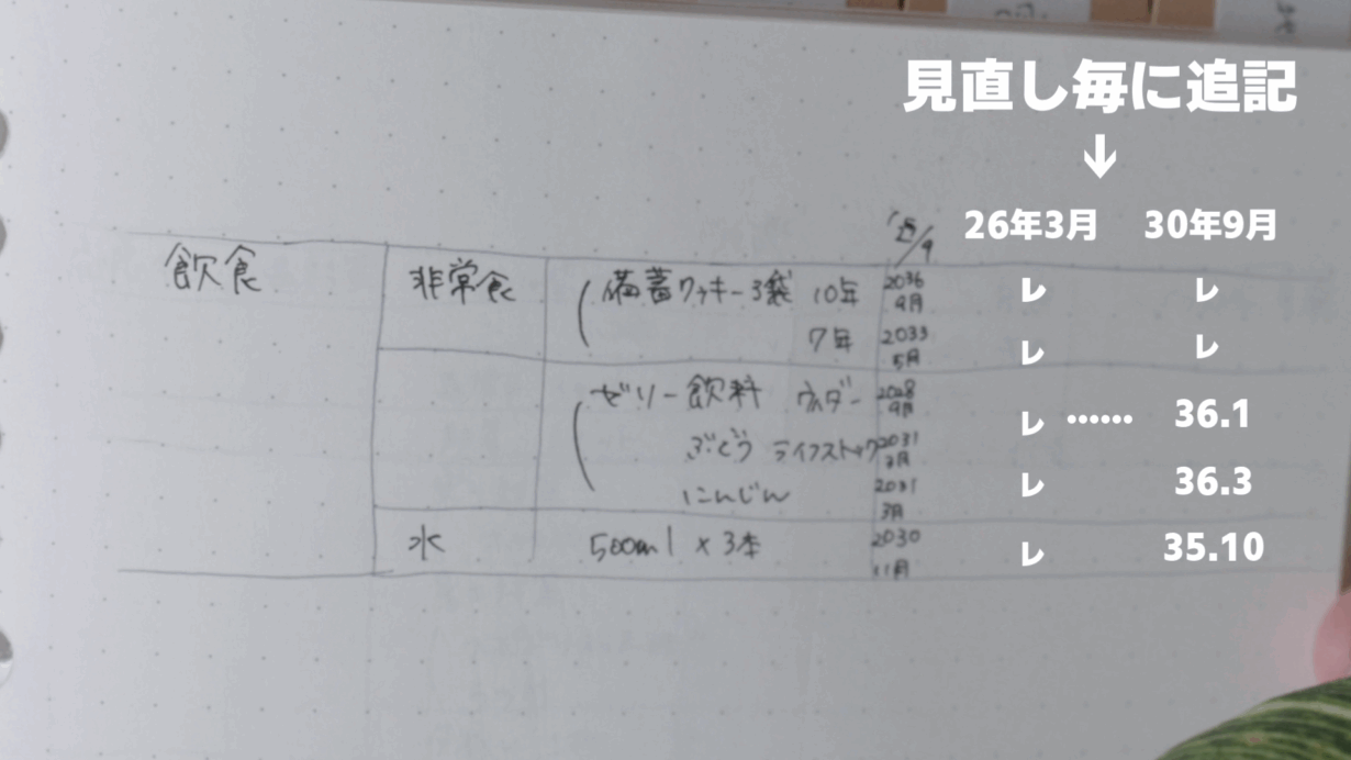 期限を書き、見直し時期が来たら入れ替える。入れ替えたときに新しい期限を記入。