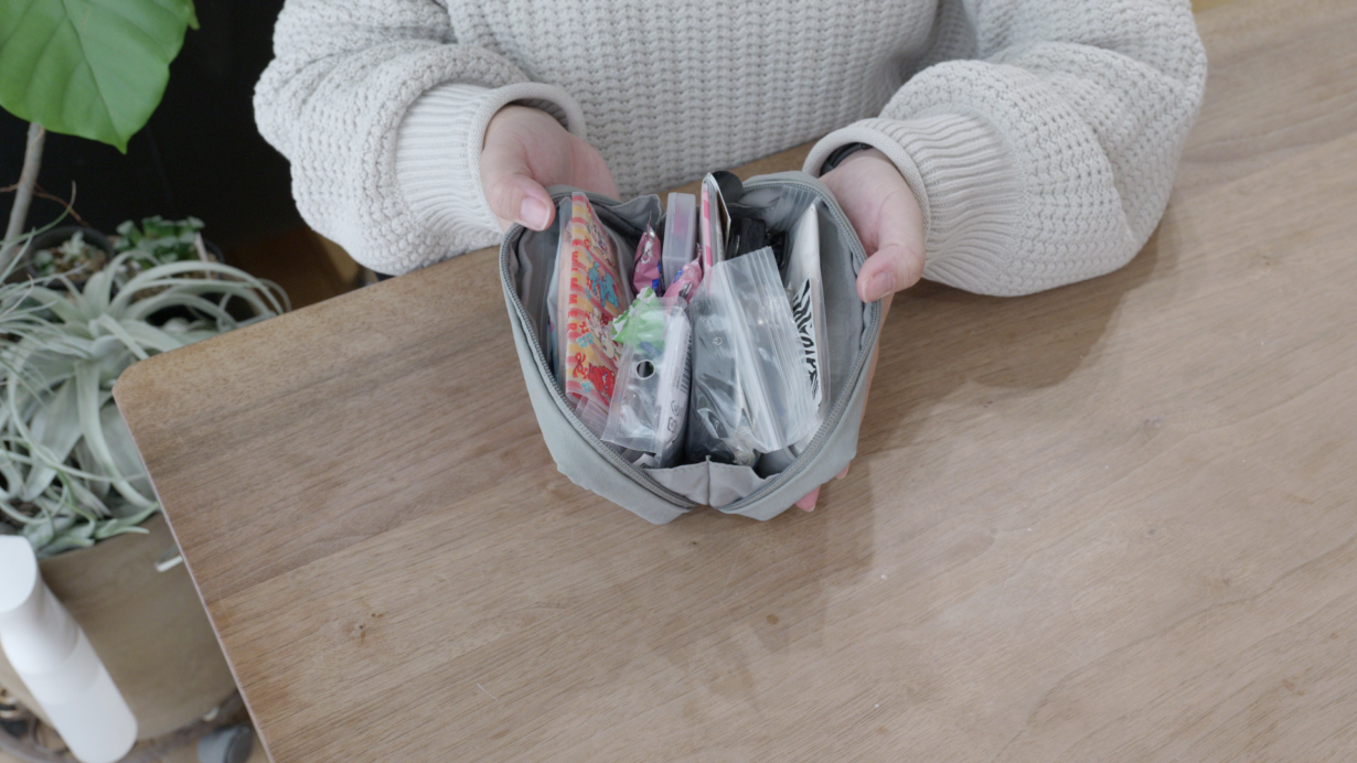 リュックでも、斜めがけの小さめのバッグでも入るようになり、詰めるというわずらわしさがなくなりました。ポーチもまだ余裕があります。